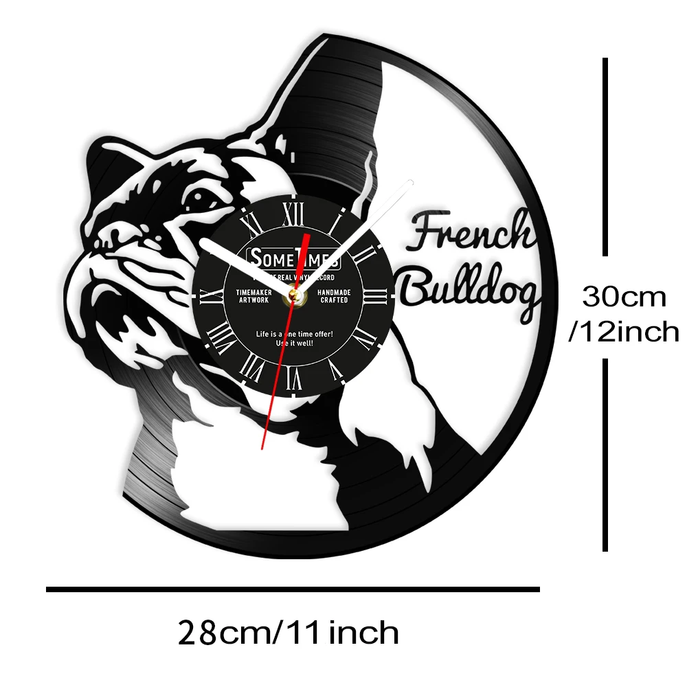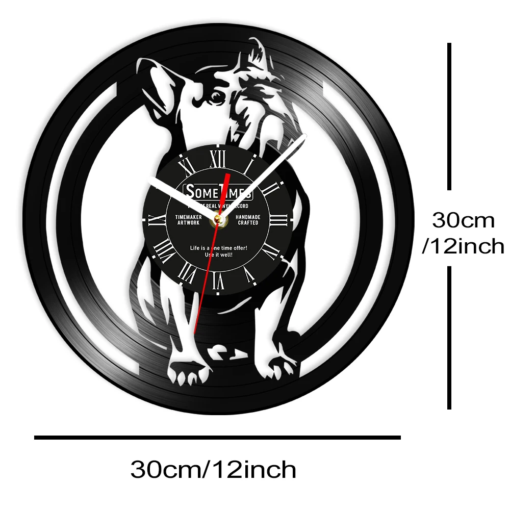 A: All clocks are made of 12 inch (30 cm) recycled vinyl records. Actual size after the cut out will vary depending on the shape.